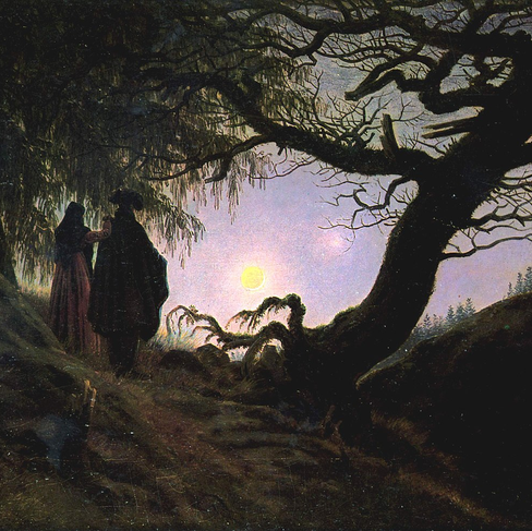 Het leven maakt van Caspar David Friedrich een melancholicus, die rust en inspiratie zoekt in de natuur. Hij schetst hele schetsboekjes vol met landschapstekeningen. In zijn koud, leeg atelier gebruikt hij die schetsen om het gevoel dat ze bij hem oproepen te schilderen. Onbestaande maar ontzagwekkende panorama's, aangrijpende vergezichten, landschappen met een ziel, doordachte composities. Hij schildert wat hij in zichzelf ziet.